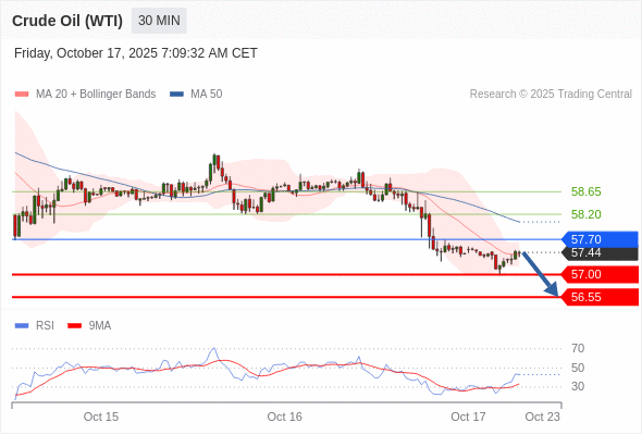 在 57.70 之下,看跌,目标价位为 57.00 ,然后为 56.55 。