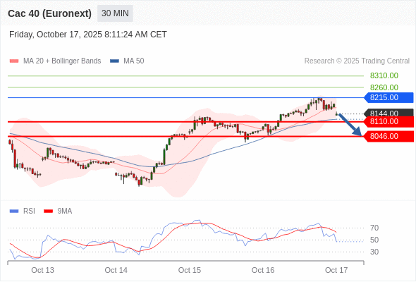 在 8215.00 之下,看跌,目标价位为 8110.00 ,然后为 8046.00 。