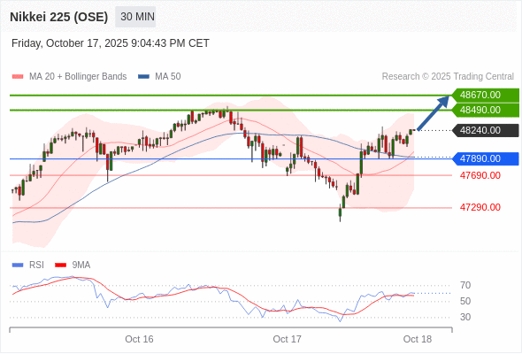 在 47890.00 之上,看涨,目标价位为 48490.00 ,然后为 48670.00 。