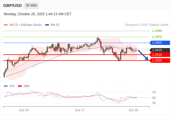 在 1.3450 之下,看跌,目标价位为 1.3410 ,然后为 1.3390 。