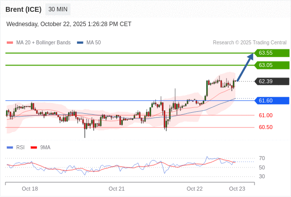 在 61.60 之上,看涨,目标价位为 63.05 ,然后为 63.55 。