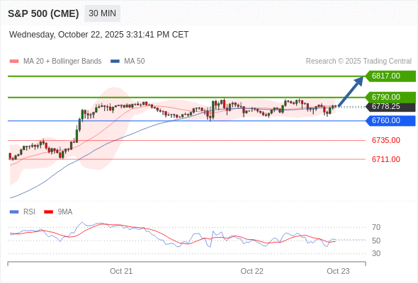 在 6760.00 之上,看涨,目标价位为 6790.00 ,然后为 6817.00 。