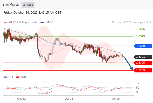 在 1.3350 之下,看跌,目标价位为 1.3305 ,然后为 1.3285 。