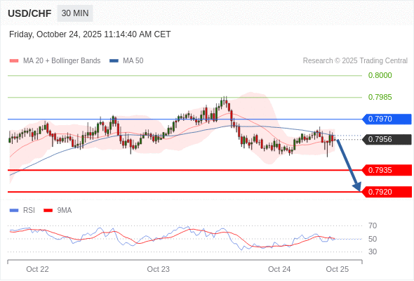 在 0.7970 之下,看跌,目标价位为 0.7935 ,然后为 0.7920 。