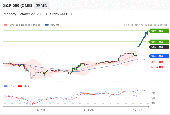 在 6824.00 之上,看涨,目标价位为 6900.00 ,然后为 6959.00 。