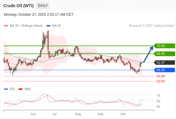 在 58.20 之上,看涨,目标价位为 66.40 ,然后为 70.40 。