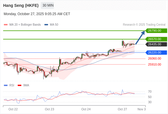 香港恒生指数期货 当日内: 在26220.00之上,看涨。