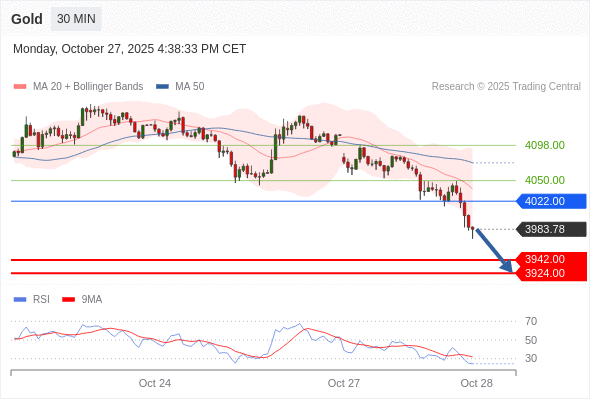 在 4022.00 之下,看跌,目标价位为 3942.00 ,然后为 3924.00 。