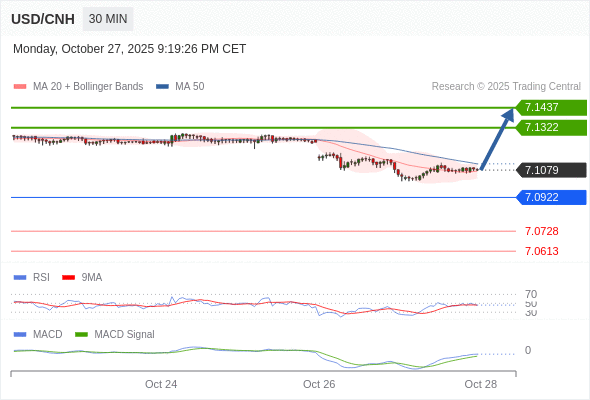 备选策略: 如跌破 7.0922 ,USD/CNH 目标方向定在 7.0728 和 7.0613 。
