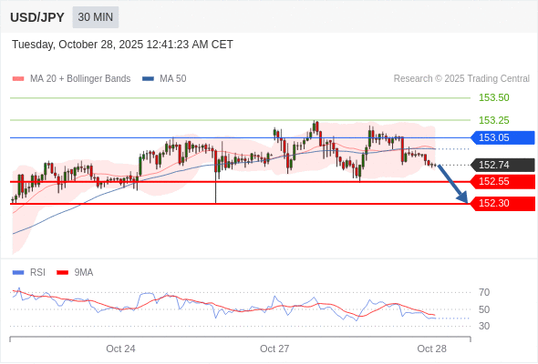 交易策略: 在 153.05 之下,看跌,目标价位为 152.55 ,然后为 152.30 。