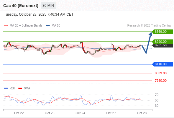 在 8110.00 之上,看涨,目标价位为 8290.00 ,然后为 8369.00 。