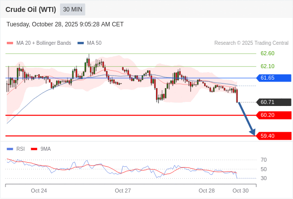 在 61.65 之下,看跌,目标价位为 60.20 ,然后为 59.40 。
