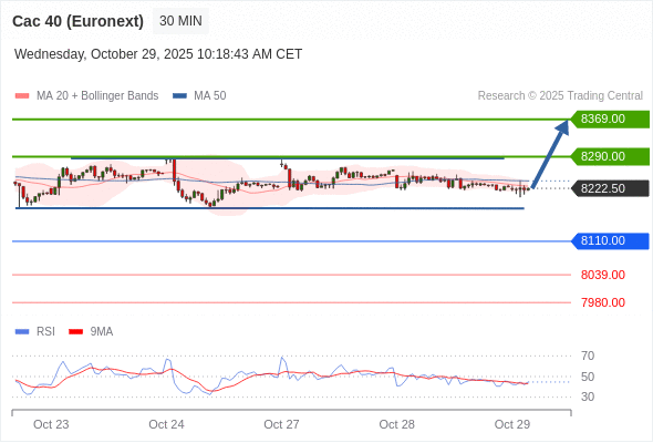 在 8110.00 之上,看涨,目标价位为 8290.00 ,然后为 8369.00 。