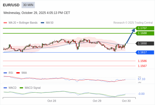 欧元/美元 当日内 : 看涨,当 1.1617 未被跌破。