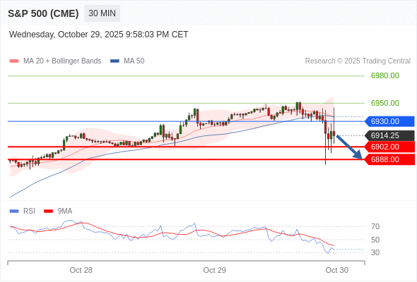 在 6930.00 之下,看跌,目标价位为 6902.00 ,然后为 6888.00 。