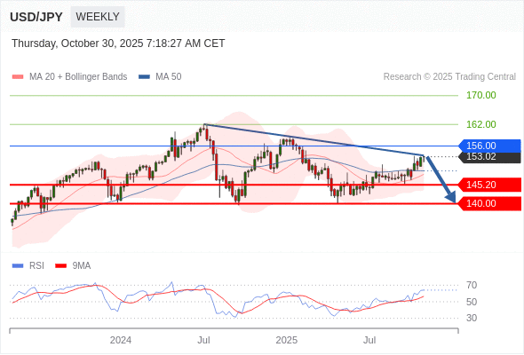 交易策略: 在 156.00 之下,看跌,目标价位为 145.20 ,然后为 140.00 。