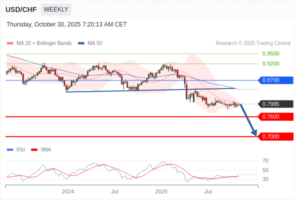 在 0.8700 之下,看跌,目标价位为 0.7600 ,然后为 0.7000 。