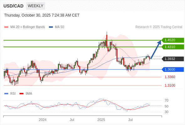 在 1.3600 之上,看涨,目标价位为 1.4310 ,然后为 1.4520 。