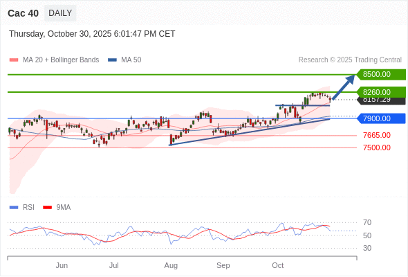Cac 40 短线: 上升趋势。