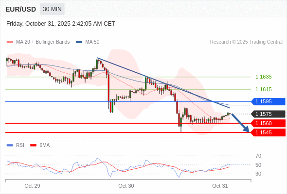 在 1.1595 之下,看跌,目标价位为 1.1560 ,然后为 1.1545 。
