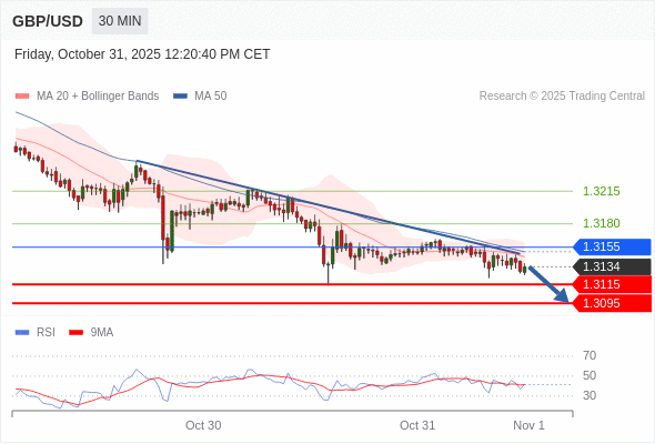 在 1.3155 之下,看跌,目标价位为 1.3115 ,然后为 1.3095 。