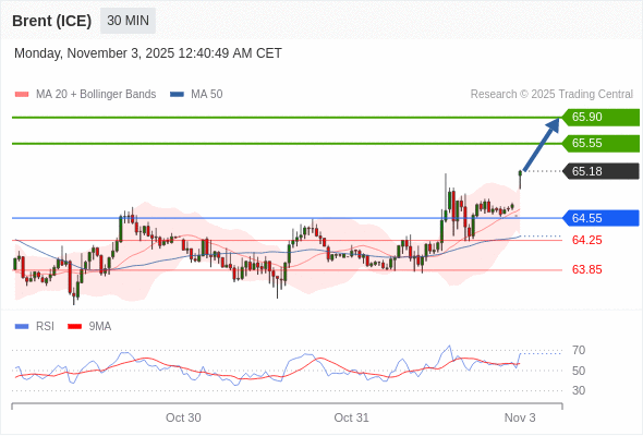 在 64.55 之上,看涨,目标价位为 65.55 ,然后为 65.90 。