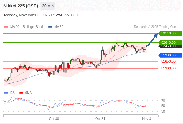 日经225股指期货 (OSE) 当日内: 期待53110.00。