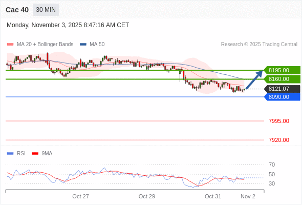 在 8090.00 之上,看涨,目标价位为 8160.00 ,然后为 8195.00 。
