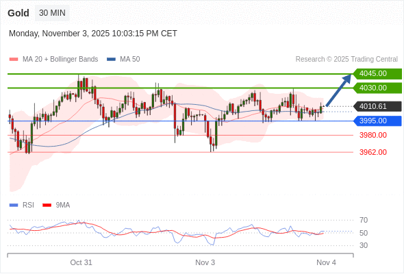 在 3995.00 之上,看涨,目标价位为 4030.00 ,然后为 4045.00 。