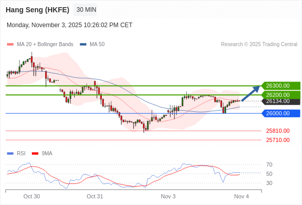 交易策略: 在 26000.00 之上,看涨,目标价位为 26200.00 ,然后为 26300.00 。