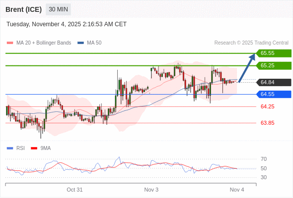 在 64.55 之上,看涨,目标价位为 65.25 ,然后为 65.55 。