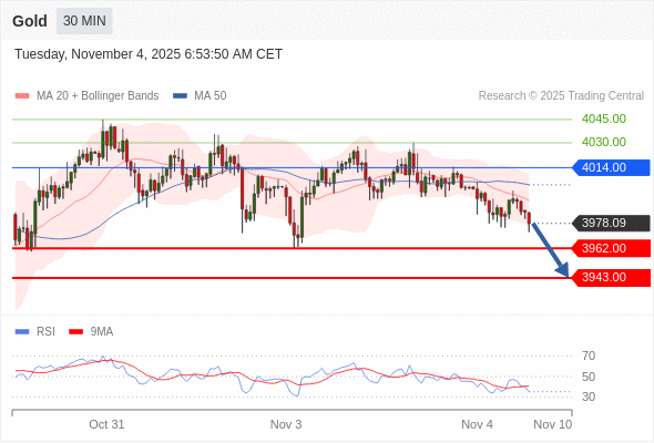在 4014.00 之下,看跌,目标价位为 3962.00 ,然后为 3943.00 。