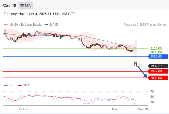 在 8060.00 之下,看跌,目标价位为 7949.00 ,然后为 7900.00 。