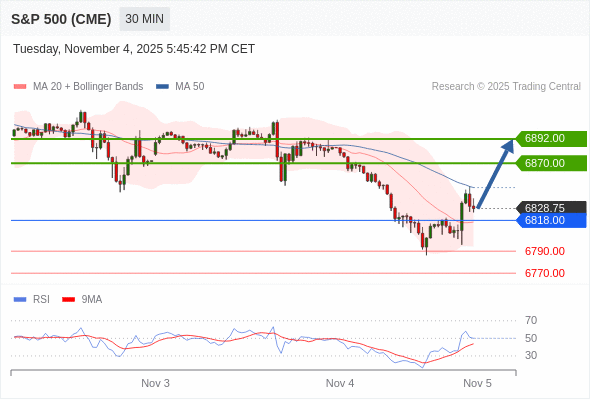 在 6818.00 之上,看涨,目标价位为 6870.00 ,然后为 6892.00 。