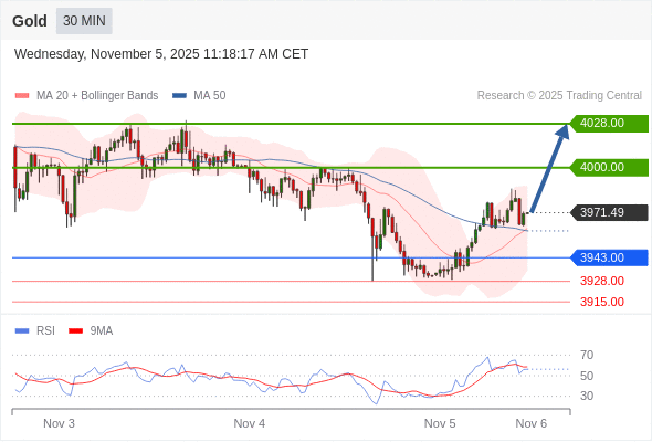 黄金现货 当日内: 目标位为4000.00。