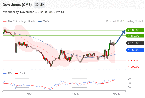 在 47365.00 之上,看涨,目标价位为 47680.00 ,然后为 47800.00 。