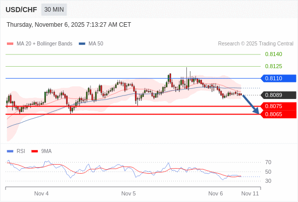 在 0.8110 之下,看跌,目标价位为 0.8075 ,然后为 0.8065 。