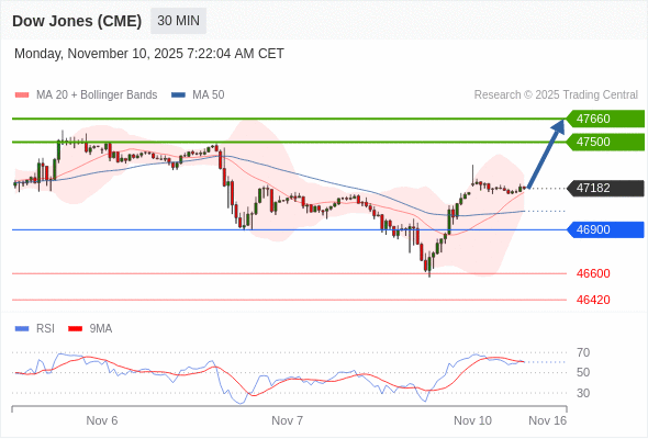 在 46900 之上,看涨,目标价位为 47500 ,然后为 47660 。