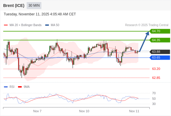 在 63.65 之上,看涨,目标价位为 64.35 ,然后为 64.70 。