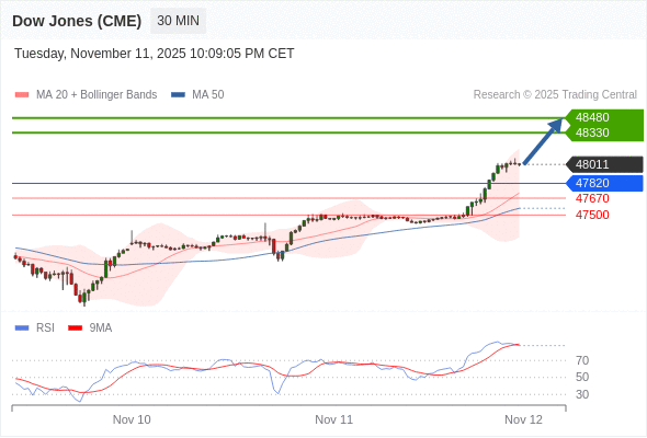 在 47820 之上,看涨,目标价位为 48330 ,然后为 48480 。