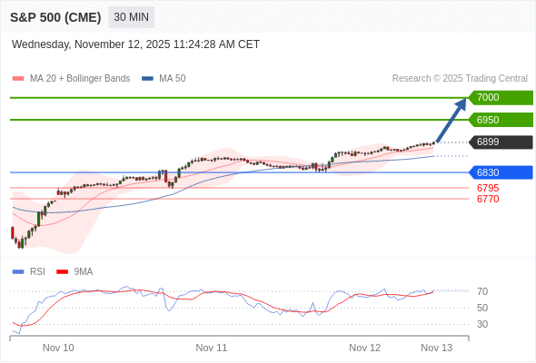 在 6830 之上,看涨,目标价位为 6950 ,然后为 7000 。