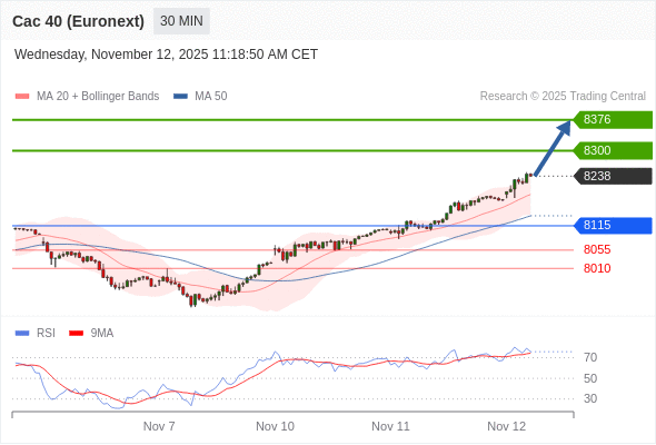 在 8115 之上,看涨,目标价位为 8300 ,然后为 8376 。
