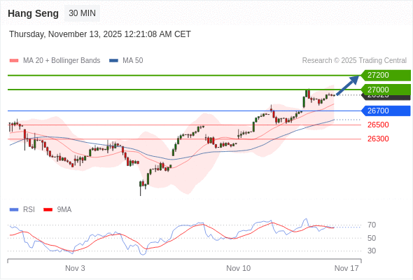 在 26700 之上,看涨,目标价位为 27000 ,然后为 27200 。