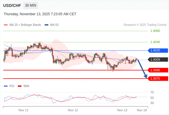 美元/瑞郎 当日内: 存在压力。