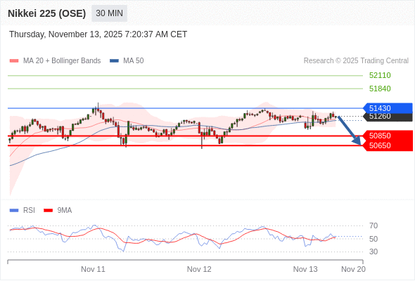 在 51430 之下,看跌,目标价位为 50850 ,然后为 50650 。