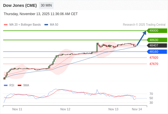 在 48160 之上,看涨,目标价位为 48630 ,然后为 49000 。