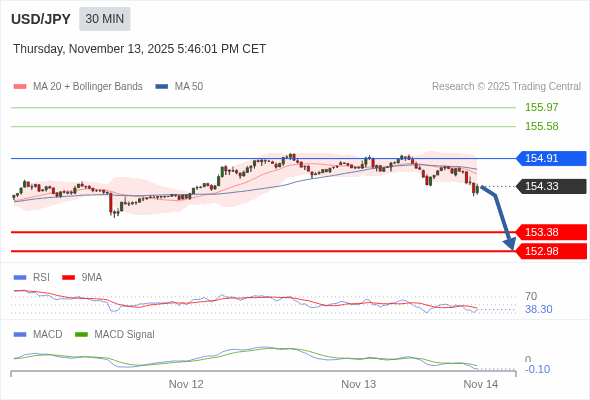 美元/日元 当日内 : 看跌,在 154.91 之下。