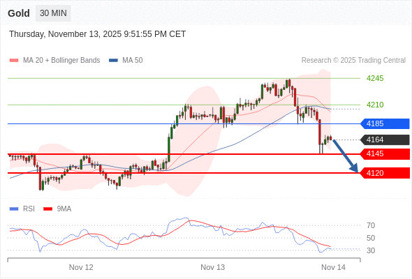 在 4185 之下,看跌,目标价位为 4145 ,然后为 4120 。