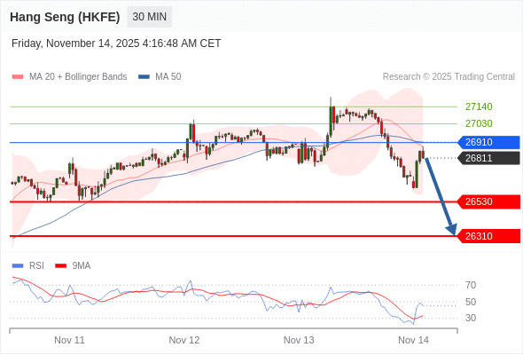 在 26910 之下,看跌,目标价位为 26530 ,然后为 26310 。