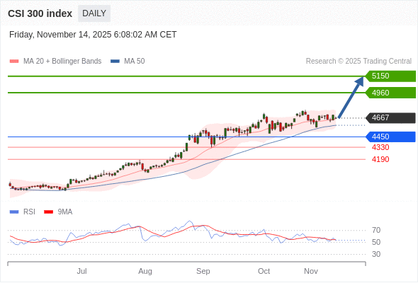 沪深300指数 短线: 在4450之上,看涨。